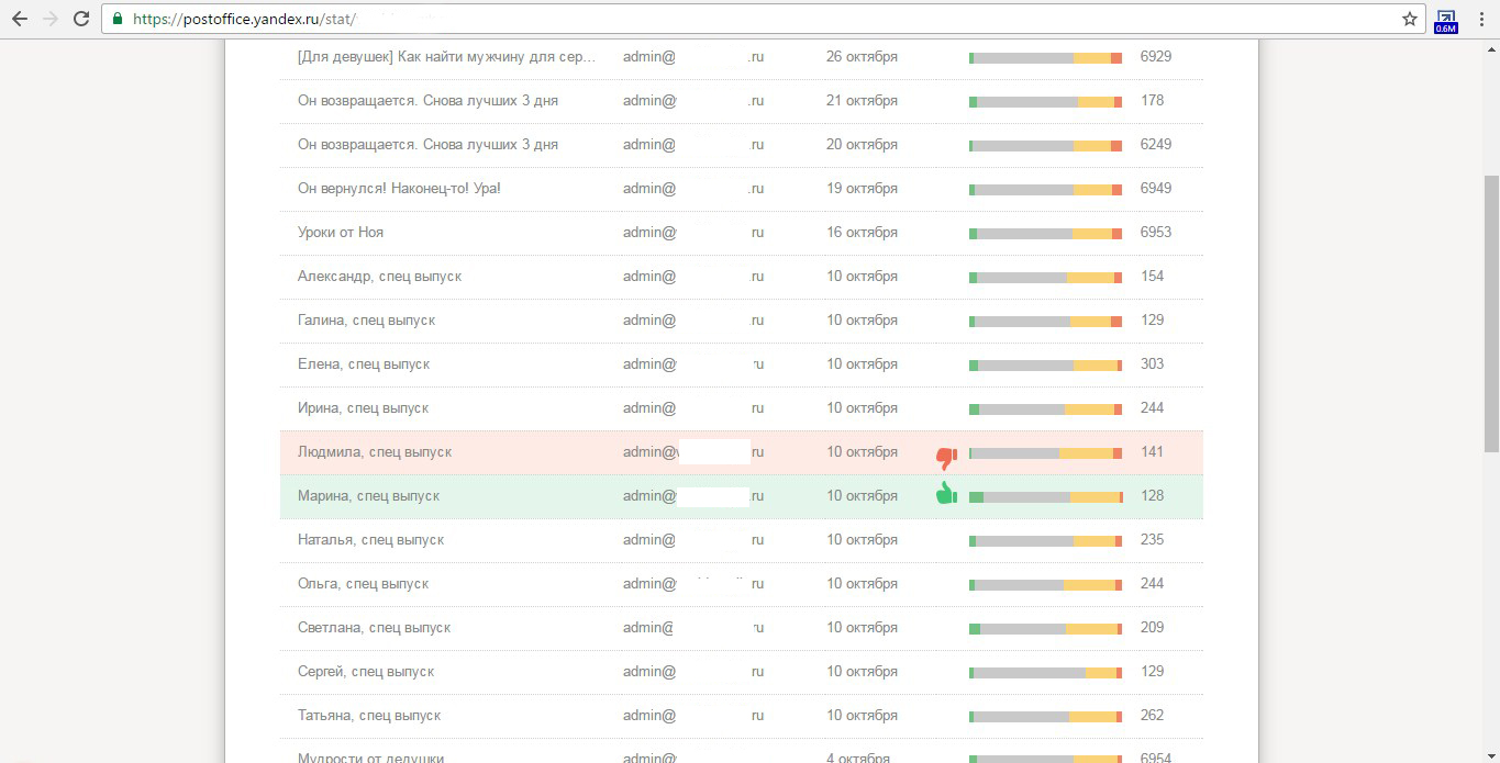 Вы будете в курсе всей необходимой информации по доставляемости, открытию сообщений, переходов по ссылкам, отпискам и многое другое.